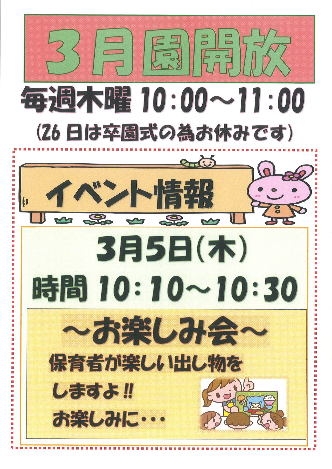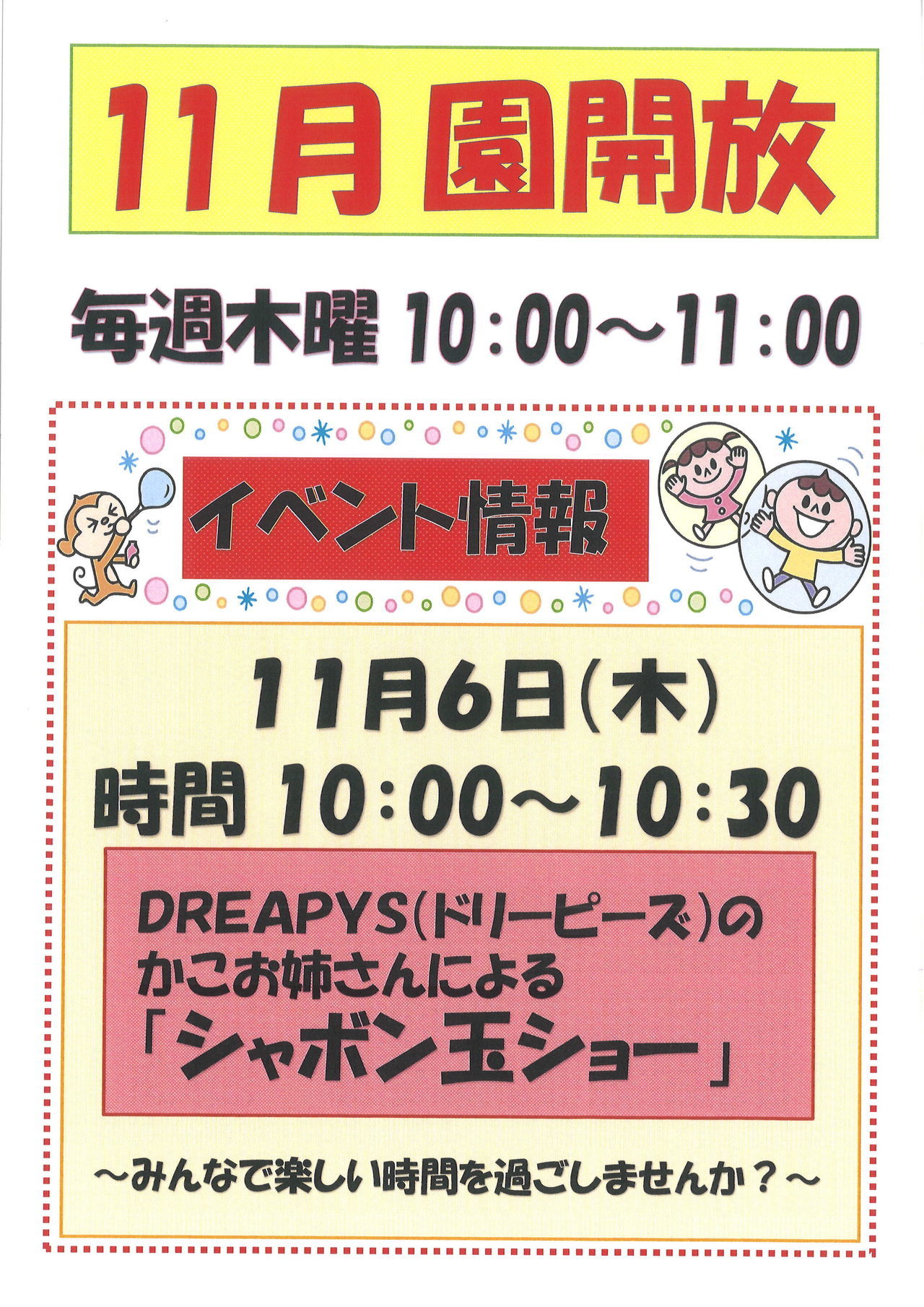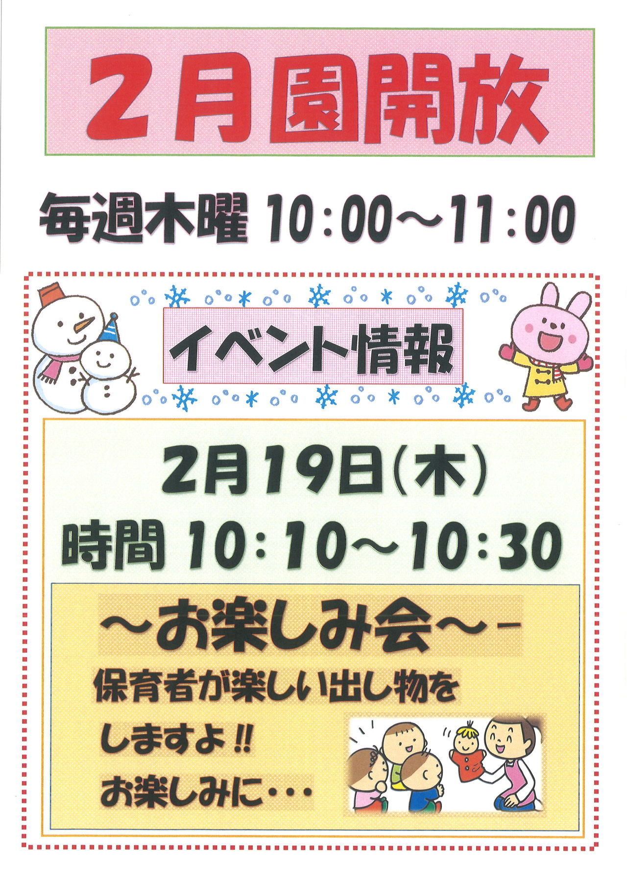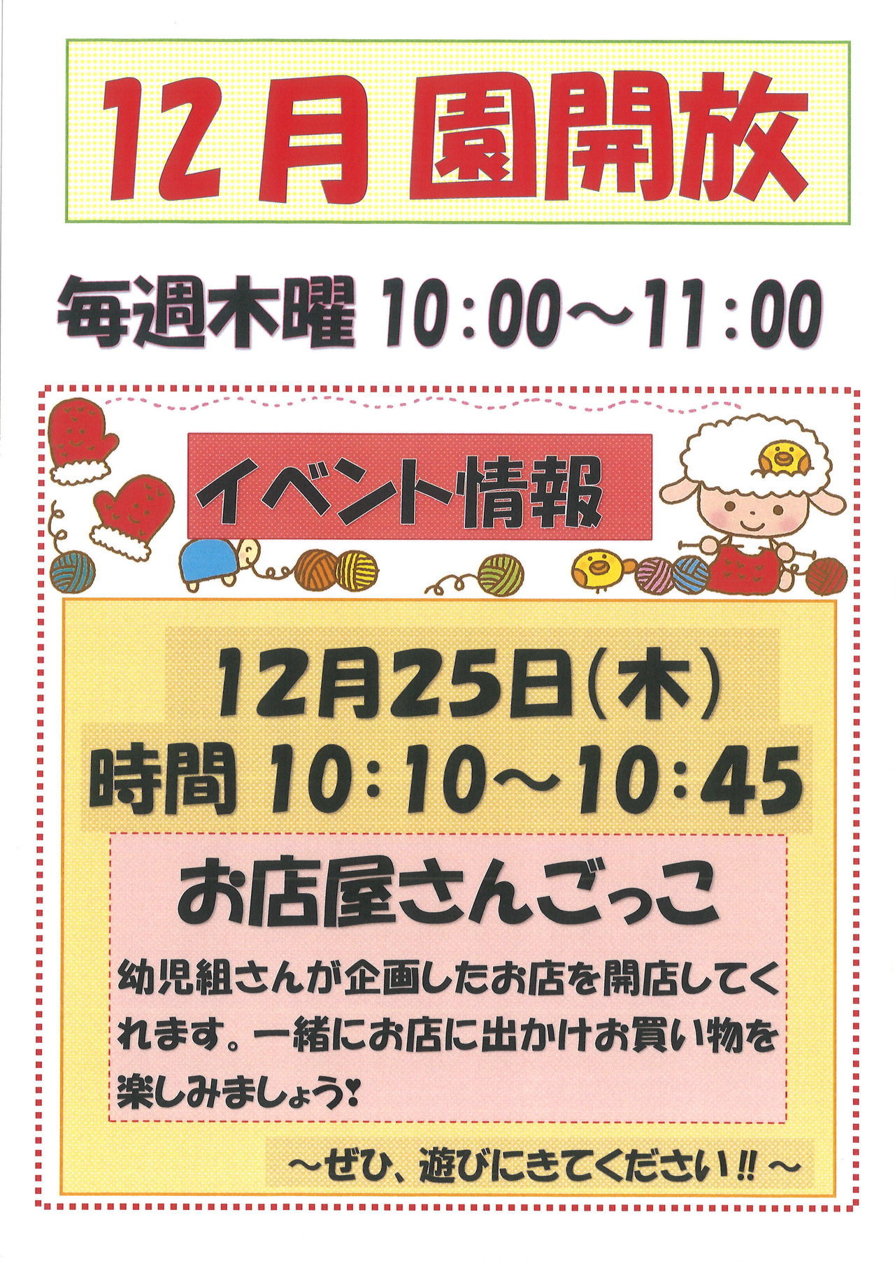 12月の園開放イベントのお知らせです。